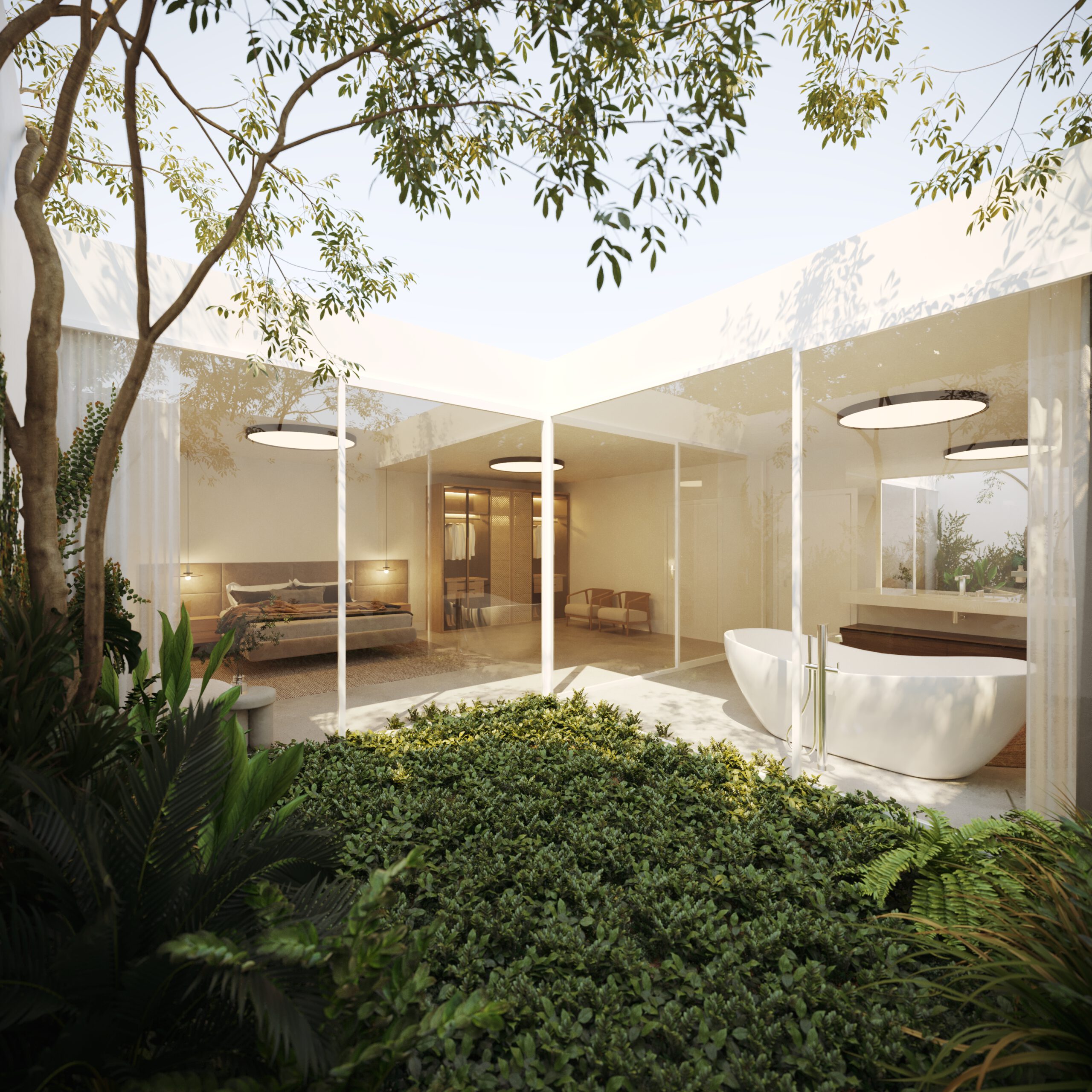 Beim Hauptgebäude genügt bereits ein vergleichsweise geringer Eingriff , um durch einen Lichtschacht eine ausreichende Belichtung der Schlafräume sicherzustellen. Die Sanitärräume sind zentral im Hauptgebäude angeordnet, sodass die Haupträume optimal mit Tageslicht und Frischluft versorgt werden können.